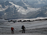 Tainah desceu com um de nossos 7 guias. Contando comigo, tínhamos um peruano e mais 5 guias russos para um grupo de 13 participantes, onde a maioria dos clientes eram russos. Não parava de pensar na volta da Tainah, mas sabia pela experiência que ela estava bem. Resolvi então me adiantar e melhorar meu ritmo, chegando então ao cume com bastante vigor e descendo rapidamente com meus parceiros brasileiros. No final da descida pude reencontrá-la e dar-lhe um forte abraço que nestes momentos significa muito mais que qualquer palavra.