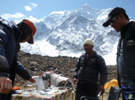 Quando de volta ao acampamento base encontrei com os recém chegados, dois amigos Indianos. O Sr. Kumar me informou que ele estava esperando que eu encontrasse uma janela de tempo perfeita... Com muitos risos, falei para eles que ia tentar o melhor possível. Os Indianos subiram para aclimatar até o acampamento 2 e baixaram. No dia 15 de Abril falei para o Chhang Dawa que meu time estava subindo e que iríamos tentar o cume, ele disse que queria fazer parte do nosso time também. Na mesma noite convidei meus amigos Indianos que ficaram muito felizes com o plano do ataque ao cume.