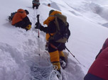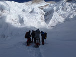 Saímos do acampamento intermediário rumo ao 4. Nossa estratégia era colocar o acampamento 4 o mais alto possível e diminuir as horas de ataque ao cume, pois estávamos exaustos abrindo caminho em neve profunda, fixando cordas e cavando acampamento em lugares íngremes e duvidosos num vento forte e frio. Nossa alimentação por cinco dias foi bolacha e suco. Encontramos um serac onde cavamos nossa plataforma com espaço para duas barracas: uma barraca para os chineses com seus dois Sherpas e o Chhang Dawa que estava na licença como escalador e não trabalhava para ninguém nessa expedição, outra para mim com o Sirdar da minha expedição e o meu Sherpa Kami. Os Indianos estavam sempre um acampamento atrás ficando sempre com os acampamentos que tínhamos desocupados. Pois um dos Sherpas dos Indianos adoeceu no C3 e desistiu do ataque ao cume.