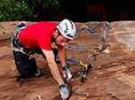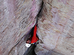 Todavia, não é só de contemplação que se fazem os montanhistas. Precisamos de ação. E lá foi o Willian Lacerda, de Ponta Grossa, armado até os dentes para abrir a primeira via. Aí ficamos na expectativa para saber se a rocha era tão boa quanto parecia vista de baixo. Proteção após proteção, ele nos foi dando o status de cada peça colocada. O resultado não podia ser melhor: rocha de excelente qualidade, perfeita para escalar em móvel! Neste mesmo dia abrimos 3 vias e já visualizamos mais uma porção de fendas alucinantes.