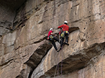 Contudo, depois de alguns meses de conquistas, já estávamos com uma quantidade grande vias por Piraí do Sul, aproximadamente 70; muitas fissuras de 7º e 8º graus, e tivemos de voltar ao antigo problema: a Highway to Hell. Pela experiência adquirida nos últimos meses, parecia que a poderíamos encadenar. Lá se foram finais de semana, lá se foram as pontas dos dedos, e por último, foi também embora a nossa autoestima... Por mais que ensaiássemos os movimentos, ela sempre nos guardava alguma surpresa. No auge da disputa o Alessandro e o Val pareciam mais próximos do FA, mas os primeiros metros da via são extenuantes, e parar para colocar as peças é muito desgastante. Sem falar no psicológico, pois são raros os pontos de proteger e nem sempre 100% confiáveis. O desafio está lá, possível 9c móvel, “de responsa”, podendo ser a via trad mais dura do Brasil! Estamos treinando para poder ultrapassar este limite.