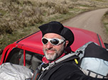 Pego o telefone satelital e ligo para o celular do Ferdinando... Fora de área. Ele só teria acesso a sinal dentro de Chile Chico. Saco! Tenho que sentar e esperar, aproveito para atualizar meu diário de viagem sentado no chão com as costas para a placa de entrada da reserva, numa réstia de sol. Resultado final, ao invés de começar a caminhar às 10:00 comecei a pedalar às 13:30, puto da vida mas ao mesmo tempo rindo de mim mesmo, afinal eu já fui pedalar com amigos em São Paulo e ao chegar na trilha percebi que havia esquecido a bicicleta em casa (ler crônica a respeito: (des)atenção plena). E o pobre Ferdinando teve que voltar de Chile Chico os 65 km para me entregar o aparelho... Fazendo a piadinha clássica "não esquece o canivete suíço autêntico", referência ao filme 127 Horas.