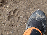 No caminho fotografei duas pegadas de puma no barro novo. Uma bem grande, provavelmente de um macho adulto e forte. Bateu medo. Parece que, de repente me dei conta que estava completamente sozinho no mato, fora de temporada, sem nenhum outro turista (maluco) por perto, por trilhas cobertas por um palmo de neve e rodeado de natureza... Inclusive pumas.