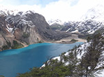 O outro lado da montanha era tão íngreme quanto o lado de onde eu vinha, só que com meio metro de neve por toda sua extensão. A vantagem era a vista espetacular da Laguna Verde, cor de esmeralda misto com turmalina. Eu enxergava nitidamente a praia onde devia chegar, a três ou quatro quilômetros de distância no máximo, com os dois rios que deveria atravessar, mas isso era de pouco consolo... Cada passo era puro sacrifício. Eu estudava minha rota de árvore em árvore, de pedra em pedra, sempre colocando um objeto grande abaixo de mim que pudesse aparar uma possível queda. Muito tenso. Meu objetivo não era a praia distante, mas simplesmente a próxima árvore, a próxima pedra.