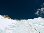 Aqui sempre é a montanha que dita as regras! Então esperamos até as 11h e os ventos deram uma trégua. Conversamos e decidimos então que iriamos até o C3 e voltaríamos no mesmo dia. Nos equipamos e por volta das 12h começamos escalar.