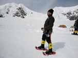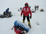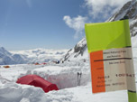Nossa expedição quase segue o rumo do clima, no primeiro dia um membro da nossa pequena equipe de 3 escaladores se machucou e precisou voltar de maneira forçada, no quinto dia de expedição, enquanto fazia um porteio para o Medical Camp (4.300m) eu fiz uma imensa bolha no calcanhar direito, o que jamais me ocorreu em outras expedições, vi tudo acabar naquele dia 09 de junho. Algo sempre me diz, na pior das situações, tentar tirar proveito de algo, respirei fundo e mesmo sabendo que ali havia perdido preciosos dias, liguei para minha amiga médica e montanhista Karina Oliani que prontamente me atendeu e me orientou a cuidar da bolha. Meu companheiro quase chorou, o seu semblante era de desespero, ele viu ali o fim da expedição, no dia seguinte deveríamos subir e com este advento, precisávamos ficar alguns dias extras a 3.300m e para piorar, havíamos levado toda a nossa comida para o acampamento seguinte a 4.300m, havíamos deixado reserva apenas para dois dias no nosso acampamento. Meu parceiro ainda chegou a me perguntar em tom de sugestão: “Será que não dá para subir mesmo assim?” eu lhe respondi que não havia condição e citei o argentino Juan Manoel Fangio, piloto pentacampeão mundial de F1, ele dizia: “Não é na primeira curva que se perde uma corrida, mas é ali que podemos perdê-la”. Apesar dos cuidados com a bolha, eu sabia que precisava no mínimo 2 ou 3 dias para uma melhora, passados os dois dias, nos preparamos para subir no dia 11, uma nevasca caiu de forma a enterrar nossa barraca a noite, desenterramos pela manhã e antes de meio dia ela estava novamente enterrada na neve, precisamos adiar por mais um dia a nossa subida, víamos o tempo se esgotar e não conseguíamos progredir montanha acima de acordo com o planejado, já estávamos usando o plano B. Quanto a alimentação resolvemos com uma expedição americana que nos cedeu comida por dois dias. No dia 13 subimos de vez para o penúltimo acampamento, foi um dia muito duro, com carga pesada, mas o tratamento feito na bolha funcionou bem e ou dois dias extras, parecem ter sido providenciais para a cura. Dia 14 descansamos para no dia 15 portear para o último acampamento.