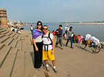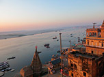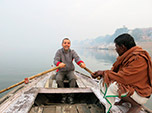 Certa manhã, acordamos na madrugada para passear de barco a remo e ver o nascer do sol de dentro do Ganges. Uma experiência inesquecível, o suave barulho do remo em contato com a água, uma leve bruma no ar e uma visão panorâmica das escadarias e construções antigas. Surpreendente, a água do rio é clara e não exala odor, pelo contrário, pode-se jurar que a água é limpa e potável. Quiçá os hindus tem razão, as águas são sagradas e curativas para aqueles que nela acreditam (o que definitivamente não era o nosso caso). Terminamos nosso dia novamente às margens do Ganges para participar do famoso aarati (cerimônia do fogo), em homenagem à Ganga Ma.