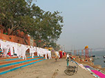 Muito próximo ao hotel está o principal crematório de Varanasi. Sim, um crematório à lenha e a céu aberto no meio do caminho, funcionando 24 horas, durante no ano todo, ininterruptamente. Basta parar 5 minutos que logo é possível se deparar com pessoas entoando mantras carregando uma maca com um corpo enrolado num lençol, coberto de flores. Os carregadores e família levam o corpo para um mergulho rápido no Ganges e o cremam em seguida. Após a cremação, a família permanece nas escadarias, preparando para o retorno para suas casas e cidades, contudo sem antes deixar de se lavar no Ganga. Aquele que acendeu o fogo inicial, raspa a cabeça ali mesmo e permanece intocável por algumas semanas.