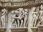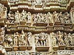 Os monumentos ficaram famosos não só pela riqueza de sua construção e conservação, mas também pelas imagens eróticas, a ponto de muitos os chamarem de templos do Kamasutra. A ideia inicial que tínhamos dos templos estava um pouco destorcida com estes estereótipos. A verdade é que apenas 10% das esculturas contêm temas sexuais. A maior parte das esculturas são de lindas divindades e representações do cotidiano dos povos daquela época, tais como músicos, animais, agricultores etc. Por outro lado, as poucas imagens sexuais chamam a atenção de todos os visitantes, demonstrando que em determinado momento histórico do hinduísmo havia grande simbiose entre religiosidade e sexo. Segundo a filosofia tântrica, o sexo era uma das práticas para se conectar com a divindade. Verdade seja dita, algumas esculturas mostram posições sexuais curiosas, um belo estímulo para imaginação. Enfim, o complexo de monumentos é realmente maravilhoso e digno de ser contemplado.