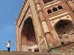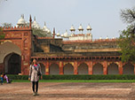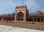 A cidade de Agra em si não nos agradou, pelo contrário, tivemos uma má impressão dela, talvez porque não encontramos um bom hotel e acabamos nos rendendo à pior hospedagem que tivemos até aqui. Tirando o Taj e o Forte, pareceu-nos uma cidade sem charme ou outros atrativos, senão mais uma grande cidade com muita poluição para todos os sentidos. Também fizemos um “bate volta” na cidade ao lado para visitar Fatehpur Sikri. Esta cidade foi fundada em 1569 pelo famoso imperador Akbar e serviu de capital do Império Mughal. Foram necessários 15 anos, entre planejamento e obras, para edificar uma série de palácios reais, haréns, tribunais, aposentos particulares e uma enorme mesquita. Curiosamente, este complexo imperial foi abandonado logo após a sua conclusão, supostamente devido escassez de água na região.