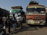 Infelizmente, deveríamos parar na cidade de Mahoba e trocar de trem. Como o trem para Khajuraho partia muito tarde daquele dia, optamos por seguir de ônibus. Quanto arrependimento! Dica de ouro para quem vem para Índia: ônibus é terminantemente a última opção, os veículos são horríveis e as estradas pior ainda. Quando chegamos na suposta rodoviária, as pernas já tremeram diante daquele caco metálico que se intitulava ônibus. Evidentemente morreríamos de tétano. A Karina hesitou com razão e impôs como condição para embarcar um lugar para se sentar naquele veículo pré-histórico que já partia lotado. Esta condição foi retransmitida ao vendedor de passagens, o qual de pronto arrumou dois acentos, provavelmente desalojando alguém.