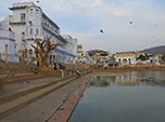Alguns dias de descanso e passeio foram suficientes para novamente cairmos na estrada, ou melhor, nos trilhos da Índia, agora seguindo para Pushkar, cidade sagrada e palco de grandes peregrinações. De acordo com a mitologia indiana, quando a esposa do Deus Shiva morreu, Sati, ele chorou tanto e por tanto tempo que suas lágrimas criaram duas lagoas, uma delas em Pushkar. Esta cidade é um dos cinco dhams sagrados (local de peregrinação) para devotos hindus e uma das mais antigas da Índia, cuja origem é desconhecida, mas as lendas associam sua criação ao Deus Brahma. Tivemos bons momentos nesta simpática e mística cidade. Sentimos a paz e as orações do Ghats. A Karina ficou fascinada pelas feiras repletas de roupas, joias, bijuterias e livrarias, mas teve que se conter e apenas desfrutar do passeio pelas lojas. Imagine como ficariam nossas mochilas após 500 dias se comprássemos uma recordação de cada destino.