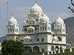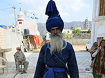 Foi em Pushkar que pela primeira vez entramos em contato com a religião Sikh. Ingressamos num lindo templo todo branco, visitamos seu interior e ganhamos um folheto explicativo da doutrina. Pareceu-nos muito interessantes seus princípios, os quais deixaremos para explicar no próximo relato, quando abordaremos nossa visita à capital religiosa dos Sikhs, Amritsar. Subitamente, enquanto liamos o folheto, fomos abordados por uma figura enigmática, com seus enormes bigodes, turbante característico, vestimenta casta e apetrechos metálicos, com colar, pulseiras e punhal. Ele insistia em falar numa língua estranha que posteriormente descobrimos, por intermédio de outra pessoa que de nós se aproximou, que era o idioma punjab, o qual era falado no estado de mesmo nome. A despeito da imagem austera deste personagem, ele se demostrou muito amigável. Saímos deste templo com uma ótima impressão deste até então desconhecido culto.