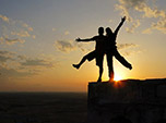 Já o Jaigahr Fort fica logo atrás do Amber Fort, porém no alto de uma colina. Subir a montanha foi uma diversão, pois além da atividade física, divertimo-nos com os macacos de cara preta, muito diferentes daqueles que estávamos acostumados até então. As portas dos fortes chamaram nossa atenção, com pontas de metal maciço na parte superior. A explicação era de que elas serviam para inibir o ataque de elefantes, animal largamente utilizado nas guerras e muitas vezes determinante para vitória, como constatou Alexandre O Grande em suas batalhas pelo Subcontinente indiano. Permanecemos neste forte, no alto desta incrível montanha até o seu fechamento, curtindo sem pressa o pôr do sol maravilhoso no deserto, enquanto Ali nos esperava pacientemente.