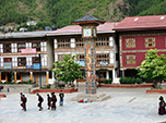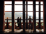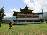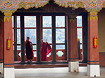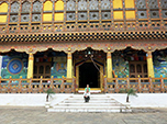 Nossa última etapa em Punakha foi no “Dzong” Pungtang Dechen Photrang. É uma construção típica tibetana, utilizada inicialmente como fortaleza militar, mas acumula as funções de centro religioso e administrativo de determinada região. As edificações são espetaculares e se tornaram o cartão postal do Butão. Elas são gigantes e bem posicionadas, geralmente no alto de uma colina ou entre rios, como este de Punakha. As paredes são altas, formadas com pedras e tijolo, com lindas portas, assoalhos e telhados em madeira. Na parte interna dos Dzongs há lindos templos e pátios pintados com cores vivas com motivos típicos da arte budista. Alguns Dzongs foram objeto de terríveis incêndios, especialmente por conta de acidentes no manuseio das velas de oração.