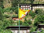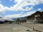 Já a segunda parte do voo não foi muito agradável. Vivenciamos a pior turbulência de nossas vidas. O avião chacoalhava de tal forma que parecia que ele iria se desfazer no ar. Foram minutos de tensão geral. Todos estavam nervosos. Só relaxamos realmente quando pisamos no chão. Até o pouso foi sinistro. O único aeroporto do Butão fica na cidade de Paro e não na sua capital Thimpu. Isso porque Paro é o local onde há um vale propício ao pouso de aeronaves. Mas nem tão propício assim, pois o vale faz uma curva. Durante a aterrissagem, a aeronave faz uma curva poucos metros do solo, dando um susto em todo mundo. Dizem que os pilotos se submetem a um treinamento especial para pousar naquele aeroporto.