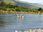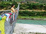 Fechamos este dia com um banho de rio nas águas límpidas e geladas de Punakha. Havia uns dias que eu pedia um banho de rio para nosso guia. Ele no início achou que estávamos brincando diante de tal pedido inusitado, mas depois concordou em nos levar para uma parte do rio, nos fundos da casa da sua avó. O próprio guia não resistiu e entrou comigo, revivendo seus tempos de criança, quando passava as férias na casa da avó. Um banho gelado que lavou nossas almas e corações.