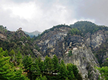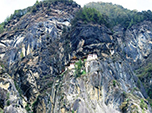 A caminhada teve início numa trilha entre árvores. Em determinado ponto se abriu uma clareira de onde pudemos ver pela primeira vez o nosso destino. Fomos arrebatados por aquela impressionante visão. Tem-se a sensação de que aquelas construções estão suspensas no ar e apenas apoiadas na pedra. Nossos corações dispararam, fotografia nenhuma conseguiria captar aquele cenário deslumbrante. Há vários templos interligados e acabamos visitando apenas os principais, até porque eles acabam se repetindo. Visivelmente é um ambiente muito importante para o budismo butanês, repleto de lendas, imagens e relíquias sagradas. Sentamos no canto de um dos templos, onde um monge lia em voz baixa uma escritura sagrada. Cada um de nós, do seu jeito, fez uma linda viagem mental revigorante.