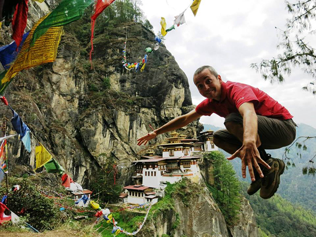 Assim como as principais cidades butanesas, em Paro há um esplendoroso Dzong, chamado de Rinpung, assim como um lindo museu, jardins e paisagens cinematográficas. No dia seguinte cedo partimos para o trekking até Tiger Nest. Enfrentamos sem dificuldade os 900 metros de subida até chegarmos a 3.120 metros de altitude onde estão os templos. Trata-se de um complexo construído num penhasco rochoso em 1692. Ele foi edificado em torno da caverna onde o Guru Padmasambhava (pessoa que introduziu o budismo no Butão) disse ter meditado durante três anos, três meses, três semanas, três dias e três horas no século VIII. Diz a lenda que este mestre, também conhecido como Guru Rinpoche, subiu até a caverna montado num tigre voador, daí se originou o atual nome.