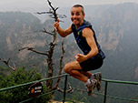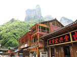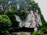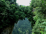Ainda cruzamos uma pequena floresta para visitar dois lindos templos, haja vista se tratar de uma montanha sagrada para o budismo. Ao final de nosso passeio pelas montanhas Tianmen paramos para conhecer a Tianmen Cave, onde há uma pedra com um furo no meio que mede 131 metros de altura e 30 de largura. Embora já estivéssemos bem cansados, encaramos os 999 degraus para chegarmos até lá. Este número tem um significado especial para os chineses, ou seja, de subir ao palácio do céu. Trata-se de um espetáculo da natureza! Esta pedra ficou particularmente famosa em 2011, quanto o paraquedista (base jump) Jeb Corliss realizou um feito histórico. Ele saltou de um helicóptero numa altura de 1.800 metros, deslizando pelo céu numa velocidade superior a 120 km/h, vestindo apenas um macacão especial (wing suit). Ele conseguiu transpassar esta cavidade e em seguida abrir seu paraquedas e pousar com segurança.