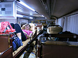 Retornamos à China de trem até a cidade vizinha de Shenzen, onde visitamos Ryan, sobrinho do cunhado americano da Karina. Eles nos relatou sua experiência de três anos trabalhando na China, dividindo conosco histórias e fatos curiosos. Passamos o dia juntos e à noite Ryan gentilmente nos deixou na rodoviária, onde pegamos um curioso ônibus com destino à cidade de Yangshuo. Não há poltronas naquele estilo de ônibus, mas três corredores de beliches, onde as pessoas viajam deitadas, espremidas cada um no seu “sarcófago”. Já havíamos viajado deitados num ônibus na Índia, mas este era muito diferente. Talvez o objetivo desta disposição seja competir com os confortáveis trens. Tivemos outra experiência com este tipo de ônibus.
