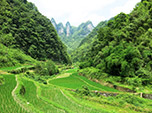 Já havíamos percorrido várias cidades chinesas, mas ainda não havíamos encontrado resquícios da “China antiga”, ou seja, pessoas cultivando as antigas tradições chinesas. O pouco que vimos até aquela altura foram construções, as quais nos pareciam demasiadamente artificiais, construídas recentemente e totalmente desconectadas da modernidade que as cercavam. Depois de muita insistência e estrada, chegamos à cidadela de Dehang, onde habita uma minoria étnica chamada “Miao”. Dehang é um pequeno vilarejo, pacato e cercado de montanhas verdes. Detalhe, simplesmente ninguém falava inglês. Com mímica e jogo de cintura, conseguimos chegar lá e nos hospedar. O lugar era tão especial que decidimos ficar mais dias do que o planejado. Foram horas apreciando o povo local levando sua rotina. O vilarejo era tão pequeno que eles conversavam entre si de suas casas. Fizemos algumas caminhadas inesquecíveis entre terraços de plantação de arroz, nadamos nos rios cristalinos e mergulhamos em lindas cachoeiras.