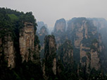 Agora era chegada a hora de visitar as tais montanhas misteriosas do “Zhangjiajie National Forest Park”, elegido patrimônio mundial pela Unesco em 1992. Seriam elas realmente tão intrigantes a ponto de inspirar aquelas lindas imagens do filme Avatar? Novamente havia hordas de turistas chineses logo cedo. Caminhamos rápido e deixamos boa parte deles para trás. Havia vários macacos no caminho, não muito amigáveis e prontos para assaltar nas bolsas dos turistas atrás de comida. Perder a comida tudo bem, o problema é que às vezes eles levam a mochila toda para o topo das árvores. Um dele ameaçou atacar a Karina, dando-lhe um susto e tanto.