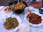 As opções nos cardápios são incríveis. O menu mais se parece com um livro ilustrado. Obviamente que boa parte das opções são iguarias chinesas impensáveis para nosso paladar ocidental, tais como cérebro de porco, vísceras de muitos animais, língua de pato, sapo, cachorro e por ai vai. Nós nos limitávamos aos pratos tradicionais e aqueles com legumes. Os chineses se fartam, pedem muitos pratos ao mesmo tempo, comem e bebem muito. Aliás, acompanhar os chineses num drink dizem ser arriscado. Eles bebem até cair e parar no caminho pode ser ofensivo. Desta experiência conseguimos escapar.