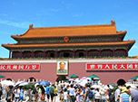 Praça Tiananmen, a maior praça pública do mundo, cercada por edifícios com grande significado político, onde se situa o Portão da Paz Celestial. Nesta praça Mao Tse Tung anunciou a criação da República Popular da China. Também ficou internacionalmente conhecido pelos protestos estudantis pró-democracia de 1989, reprimidos duramente pelos militares, levando a morte de milhares de estudantes. Nos dias que sucederam o massacre, um jovem desarmado invadiu esta praça e se colocou diante de uma fileira de tanques de guerra. Esta imagem ganhou destaque nos maiores jornais do mundo, chegando a ser eleito pela revista Time como uma das pessoas mais influentes do século XX, porém ele continua anônimo, ganhando assim o nome de “O Rebelde Desconhecido”.
