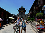 Conseguimos assim pegar o trem noturno para Pingyao e dormir no seu balanço gostoso. Basta dois segundos de trem em movimento para Karina cair no sono profundo. Quando criança, ela deve ter sido balançada, pois o mesmo acontece com ônibus. Pingyao é uma cidade cercada de muralhas, a qual ainda preserva um incrível patrimônio arquitetônico de centenas de anos. Visitamos toda a cidade de bicicleta nos poucos dias que passamos por lá, percorrendo sítios arqueológicos, museus e ruelas típicas. Nunca nos cansamos de observar a curiosa cultura chinesa, como, por exemplo, os gafanhotos engaiolados. Os gafanhotos na cultura chinesa representam muito atributos como longevidade, felicidade, boa sorte, abundância e especialmente a fertilidade. Embora Pingyao realmente valha a visita, ainda recordaremos do vilarejo Dehang como o local que nos fez sentir na China antiga, a China do nosso imaginário.