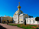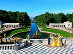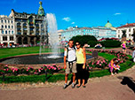 Há muitas atrações turísticas em São Petersburgo e foi difícil elencar prioridades. Acabamos escolhendo aquela mais afastada, onde chegaríamos de transporte público, ultrapassando os limites da cidade, tendo oportunidade de percorrer regiões residenciais. Fomos ao fascinante Palácio Peterhof. Um conjunto de glamorosas edificações e jardins, construído por Peter, o Grande. Peterhof (que significa Jardim de Peter) é tão incrível que chegou a ser chamado de “Versailles Russo”. Dentre as várias fontes d’água, há uma ricamente ornamentada que desagua num canal que, por sua vez, corre em direção ao imenso golfo finlandês. Lá as pessoas se banhavam e pescavam. Cada um se diverte com a praia que tem, certo? Nós novamente só arriscamos a água nos joelhos.