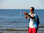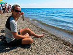 Compramos deliciosos Omuls defumados no mercado local, cervejas no supermercado e passamos o dia na “praia russa”, como a maioria dos locais. Por razões óbvias, poucas pessoas se arriscavam entrar no congelante lago. Mas como poderia eu perder essa oportunidade, de me banhar naquele lago cristalino? Vestindo cuecas, mergulhei naquelas águas frias. Minha pele parecia receber milhões de facadas, meus músculos enrijeceram e meu corpo chacoalhava. As famílias russas ao nosso redor e a Karina riam com a cena.