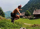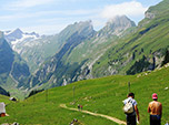 Buda nos levou para fazer um trekking numa região espetacular. A Suíça é o paraíso do trekking e esqui. Cortada pelos Alpes, há uma infinidade de opções para curtas e longas caminhadas, mountain bike, downhill, paragliding, basejump, escalada na rocha e neve, ski, snowboard e muito mais. Há excelente infraestrutura, com trilhas bem marcadas, mapas detalhados, refúgios, hotéis, restaurantes e teleféricos. Tudo isso sem tirar o aspecto selvagem e natural das montanhas. Diferentemente da China, onde as trilhas de terra foram substituídas por calçadas pavimentadas e escadas de cimento, onde há comércio por todo lado, a Suíça tem um compromisso ambiental nunca visto antes. As trilhas são rústicas, sem comércio, somente rodeada de verde, cortando lindas montanhas e lagos, com paisagens de tirar o fôlego.