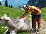 Durante o trekking nos Alpes suíços, outro aspecto que nos chamou atenção, apesar de bobo, foi o tamanho e pujança das vacas leiteiras. Elas são absolutamente enormes, gordas e de pelagem brilhante. Parecem se originar de uma criação genética perfeita (quem sabe é isso mesmo?). Dizem que este é o segredo do incomparável chocolate e queijos suíços. Não há quem vá para Suíça e não se esbalde com os divinos chocolates e deliciosos queijos. As opções são intermináveis e disponíveis em todo lugar, de pequenos ou grandes supermercados às chiquérrimas boutiques. Obviamente que os preços, embora na maior parte acessíveis, variam muito, havendo opções para todos os bolsos. Nossos amigos nos proporcionaram degustações gastronômicas inesquecíveis.