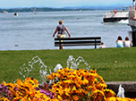 Uma vez recuperado, Anna e Fabrício me levaram para cruzar de barco o lindo lago Leman e conhecer a outra margem, ou melhor, pisar em outro país. Do lado de lá estava a França. Foi interessante se ver no meio de um lago na fronteira entre dois países. O clima estava agradável. O sol quente, mas suavizado pelo frescor das águas frias do lago. Não havia imigração nos esperando para carimbar nossos passaportes, mas um encantador porto, com casinhas lindas e bem decoradas, com muitas flores e jardins bem cuidados, restaurantes chiques, cafés e lojinhas.