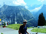 Não era possível visitar tudo, seja pela falta de tempo, seja pelo alto custo. Visitei algumas montanhas e fiz alguns trekkings interessantes. O primeiro se chama Schilthorn, 2,970 metros de altitude, fica próximo ao encantador vilarejo de Mürren. Do seu cume há uma visão espetacular do pico Jungfrau (4,158 metros), dos glaciais (gelo eterno) e as demais montanhas vizinhas. No cume da montanha há um restaurante giratório. Sim, um prédio em forma de círculo que gira em torno de um eixo. Lá foram filmadas algumas cenas de filmes da série James Bond - 007. Infelizmente o tempo estava instável, com nuvens intrometidas, cobrindo a paisagem parcialmente. Embora na base estivesse calor, lá em cima estava frio e caindo a temperatura drasticamente na medida que o por do sol se aproximava. Desci rapidamente a trilha, com cuidado extra nas encostas íngremes, cujo erro levaria a morte certa.