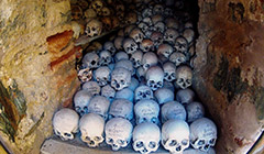 No dia seguinte, mudei de monastério. Peguei um barco que seguia até o final da península, de forma que eu pudesse ver os monastérios mais distantes e escolher qual deles eu tentaria me hospedar. Parei intuitivamente no Monastério Dionysiou, dedicado a João Batista, construído em 1374 surpreendentemente no alto de um imenso bloco de pedra à beira mar. Fui amavelmente recebido pelo monge chefe, meu xará, chamado Pablos, o qual falava bem inglês e me conduziu pelos corredores e escadarias do mosteiro. Como recebi um quarto privativo, desta vez não acompanhei tão rigidamente as cerimônias, tornando minha estadia mais tranquila. O visual lá de cima já era inspirador por si só. Caminhei por todo lado, seguindo algumas trilhas, parando para contemplação. Há um prédio onde são guardadas as ossadas dos monges falecidos. De início pareceu um pouco macabro ver todos aqueles crânios empilhados. Mas para aqueles monges há outro sentido para a morte, algo natural e não temível.