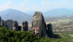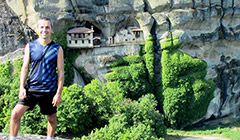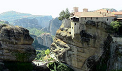 Quando senti que meu tempo na cidade de Atenas havia se esgotado, comprei os tickets de trem para o interior da Grécia. Rumo à região onde estão as montanhas e mosteiros que compõe Meteora, seguindo os conselhos dos amigos Fábio e Deca. Uma região linda e mística, repleta de mosteiros da Igreja Ortodoxa. É o segundo maior complexo de monastérios ortodoxos do mundo, perdendo apenas para o Monte Athos, do qual falarei mais para frente. A região é caracterizada por formações rochosas fascinantes. Oriundos de terremotos, força do vento e chuva, surgiram imensos e compridos pilares de pedra, em direção ao céu (daí se origina o nome “suspenso no ar”), lembrando muito o nosso Pão de Açúcar. Todavia, ao invés de um, há dezenas deles juntos. No topo destes monólitos foram construídos vinte e quatro monastérios, interligados por estradas, trilhas e, algumas vezes, pontes. Há quase mil anos, religiosos eremitas se instalaram em cavernas e no topo das montanhas desta região, buscando isolamento e imersão espiritual. A força da fé e auxílio mútuo, para sobreviver naquela região remota, promoveu a união desses religiosos formando-se as primeiras comunidades.