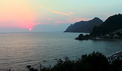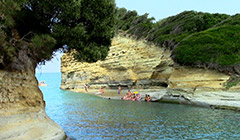 Porém, a praia que realmente me surpreendeu foi Palaiokastritsa. Segundo a Odisseia de Homero, foi nesta praia que Ulisses fez sua última parada durante sua longa viagem de dez anos para retornar à Ítaca e reencontrar sua amada Penélope. Uma pequena região peninsular com duas lindas praias, intercaladas por uma pequena colina, cujo topo havia um lindo monastério florido. Ambas as praias eram formadas com areia de cascalhos, água cristalina azulada e espremidas por paredões de pedra. Os paredões são altos e recortados, formando cavernas naturais. Na segunda praia se podia curtir um inesquecível por do sol no mar, apreciando a mudança de tonalidades no céu, uma pintura divina.