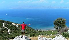 Depois de mais de uma semana estacionado na praia de Pelekas, era hora de explorar um pouco o resto da ilha de Corfu. Aluguei uma motocicleta automática e durante dois dias visitei outros pontos da ilha. Foram horas na motoca para alcançar o ponto mais alto chamado Old Perithia. Um caminho lindo e sinuoso, cortando oliveiras e vilarejos tradicionais. A visão era sensacional, de onde se observa muitas praias, as colorações do imenso mar azul turquesa e até mesmo a Albânia lá distante. Old Perithia é o vilarejo mais antigo de Corfu, onde há oito igrejas e um conjunto de casas. Trata-se de um vilarejo no estilo veneziano, cercado de vinhedos, oliveiras, cerejas, figos e carneiros.