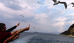 A ansiedade aumentou quando me vi num barco repleto de religiosos, vestidos com túnicas pretas, dos pés à cabeça, com longas barbas, chapéu e lenço, cobrindo o cabelo até as costas. Também havia muitos peregrinos, geralmente em famílias com filhos, cujas esposas ficaram para trás no porto. Passado um tempo, distraído pelas gaivotas que sobrevoavam o barco e comiam direto das mãos dos monges, finalmente vi o primeiro monastério. Depois outro e outro, um diferente e maior que o anterior. Eles mais se pareciam com castelos medievais, alguns construídos no topo de paredões de pedra com mais de 200 metros de altura. Um verdadeiro primor de engenharia, construído há séculos, resistindo ao tempo e aos terremotos. Não por menos, eles estão listados pela Unesco como Patrimônio Mundial da Humanidade.