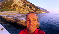 Mount Athos é uma península grega, onde religiosos vivem isolados do mundo que conhecemos, com a mesma rotina há mais de mil anos. Sim, isso mesmo, imagine um estilo monástico repetido há dezenas de séculos! Dimistris me disse que sonhava conhecer aquele lugar e que eu deveria pesquisar a respeito do assunto, inclusive ajudou nesta tarefa. Foi o que fiz, fiz algumas pesquisas e assisti um documentário a respeito daquele isolado local. Fiquei fascinado por tudo que li e assisti. Trata-se de uma parte da Grécia totalmente autônoma, nem mesmo o governo grego tem autoridade dentro de suas imediações. Mount Athos é acessível apenas via marítima mediante prévia autorização das autoridades religiosas.