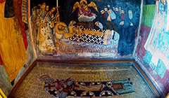 O monge que me recebeu sussurrou rapidamente o itinerário o qual eu deveria seguir. Oração das 17h30 às 20h. Ok. Apenas duas refeições diárias. Ok. Oração às 3h da manhã. O quê? Sim, oração às três horas da madrugada. Participei da primeira cerimônia tentando copiar as pessoas nos rituais. A igreja era linda e mística. Não há eletricidade, mas magníficos lustres e candelabros cujas poucas velas acesas criam uma penumbra misteriosa. As paredes e tetos são repletos de afrescos e imagens sagradas. Embora tudo fosse muito diferente, aproveitei para meditar, orar, captar e enviar a forte energia daquele local para família. Afinal, eu estava num local onde as pessoas rezam ininterruptamente há mil anos. Sim, sem parar, pois mesmo fora das missas, os religiosos continuam recitando mantras sagrados dia e noite.