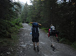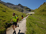 O início da trilha forrada de rochas foi aberta pelos romanos alguns séculos atrás e começa com uma forte subida. O bom é que deixamos o vale para trás e entramos realmente montanha acima e agora começa a aparecer as pessoas que realmente estão fazendo a trilha. Sendo que poucos estão fazendo o Tour du Mont Blanc completo, alguns aproveitam o fim de semana para fazer apenas alguns trechos ou estão fazendo outros roteiros que a montanha oferece. O incrível é ver muitas pessoas treinando para os Ultra Trail, passam por nós correndo tanto descendo ou subindo a montanha.
