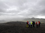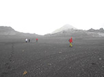 A chuva foi apertando aos poucos deixando o céu cada vez mais cinza, o terreno em que caminhávamos também era preto com pequenas pedras, o dia hoje estava muito estranho. Depois de uma rápida parada para um lanche chegamos em uma enorme planície com aqueles pedriscos que é usado para asfaltar as ruas, isso deve ser resquícios de alguma antiga erupção. A paisagem era diferente e bonita.