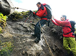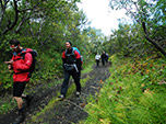 O último dia de trekking amanheceu com sol, o que animou a todos. No início da trilha desviamos um pouco e vimos um afloramento de água na encosta de um montanha que surpreendeu a todos, normalmente vemos filetes de água em uma nascente, mas alí a água brota entre as pedras em grande quantidade.