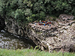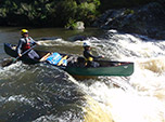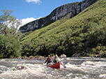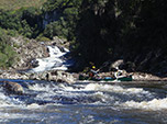 Essa mesma cheia do mês elevou o nível do Touros apenas o suficiente para o baixo calado das canoas passarem por cima da maioria das pedras no fundo do rio. Mas a medida que avançávamos no Touros o desnível aumentava e junto todos os tipos de dificuldades: quedas d'água de tamanhos diversos eram um dos nossos maiores obstáculos, algumas passíveis de manobras com nossas queridas embarcações, outras dignas de um trato com o Diabo; pedras do tamanhos de carros - não dos populares, mas desses 4x4 vendidos em todo o mundo; corredeiras, refluxos, estreitamento das margens e, claro, não posso deixar de mencionar o frio das águas gaúchas!