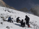 Seguimos exatamente o mesmo padrão de logística e quando estávamos no Campo Base recebemos a comum noticia que a janela que esperávamos não havia se confirmado e que teríamos apenas uma chance e 2 dias antes do que havíamos programado. Analisando aquela situação e vendo que mais da metade do grupo já se encontrava bem aclimatado, tocamos do base direto ao Campo 2 de onde deveríamos atacar o cume no dia seguinte pois em seguida o tempo mudaria para pior, porém ao chegar ao Campo 2 recebemos mais uma previsão agora dando-nos mais um dia para a tentativa. Felizes com a noticia desistimos da idéia de atacar do Campo 2 para subirmos ao Campo 3 e fazermos uma tentativa mais concreta e claro com mais chances de sucesso. Dito e feito, subimos ao Campo 3 e na mesma madrugada por volta das 5:30 da manhã partimos rumo ao cume em um dia bom, utilizando menos roupas pois a temperatura estava razoável e propicia a ascensão.