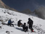 O terceiro grupo por sua vez era bastante heterogêneo, o que trazia um desafio ainda maior para o papel de guia, onde todos devem se entender bem naquele ambiente belíssimo, porém de stress e desconforto. Desta vez o cronograma foi perfeito e subimos exatamente como o programado ao campo 1 e posteriormente ao campo 2 onde fomos surpreendidos com um cogumelo de nuvens no cume da montanha, exatamente o pior clima que poderíamos imaginar, ou melhor que não poderíamos imaginar pois é claro esta mudança repentina no micro-clima não estava em nossas previsões. Estes grandes cogumelos indicam uma zona de baixa pressão onde são acumuladas nuvens e tormentas de grande poder. Na realidade era apenas um teste para saber se estávamos realmente presentes e se realmente éramos perseverantes.