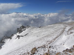 Descida do cume em fevereiro (Campo Independencia-6400m, abaixo e ao fundo) Foto: Renato Zangaro